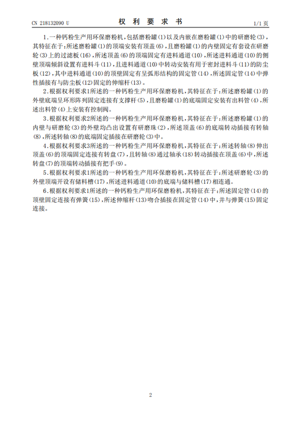 一種鈣粉生產(chǎn)用環(huán)保磨粉機(jī)